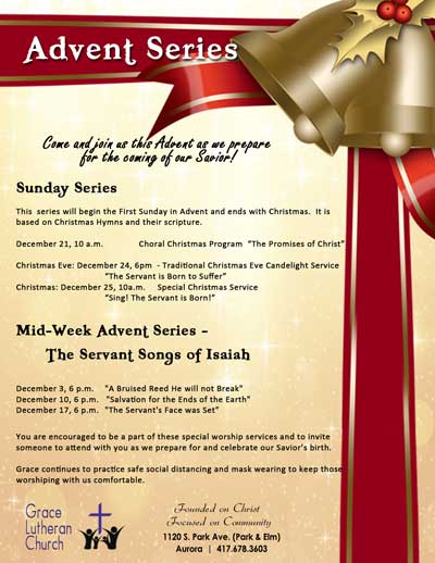 Welcome to the official website of Grace Lutheran Church, Aurora, Missouri We love meeting our guests and visitors face to face but realize that in today's world many first visits are not personal and we are thrilled you have found your way to our website. We hope you will find helpful information as to what we do and who we are.