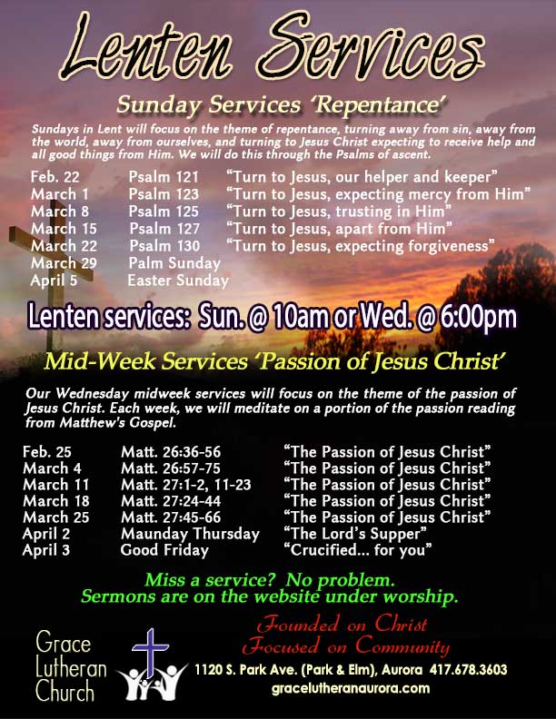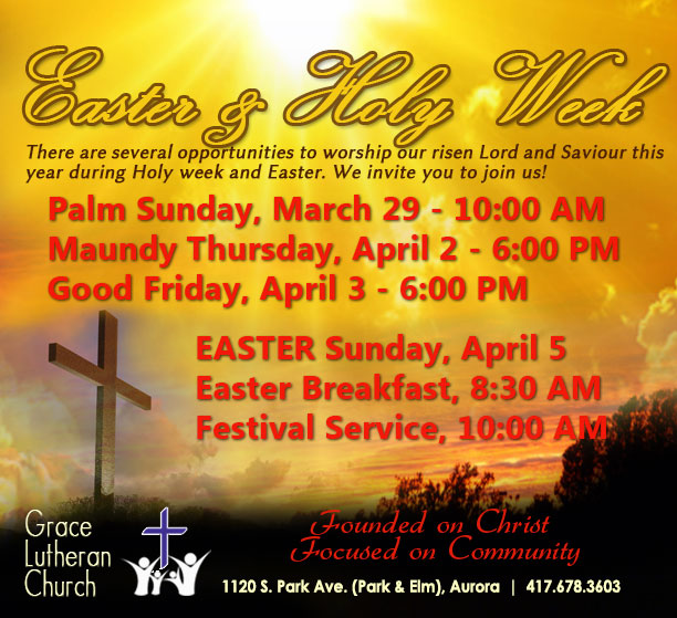 Welcome to the official website of Grace Lutheran Church, Aurora, Missouri We love meeting our guests and visitors face to face but realize that in today's world many first visits are not personal and we are thrilled you have found your way to our website. We hope you will find helpful information as to what we do and who we are.